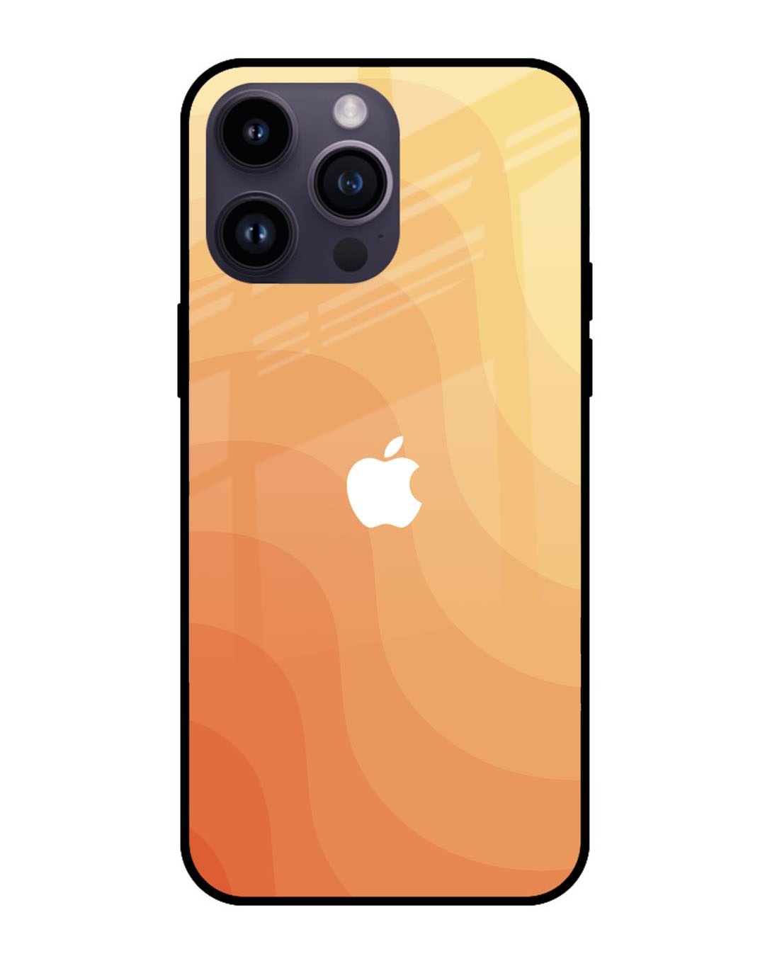 Orange Curve Pattern Premium Glass Case for Apple iPhone 14 Pro Max (Shock Proof, Scratch Resistant)