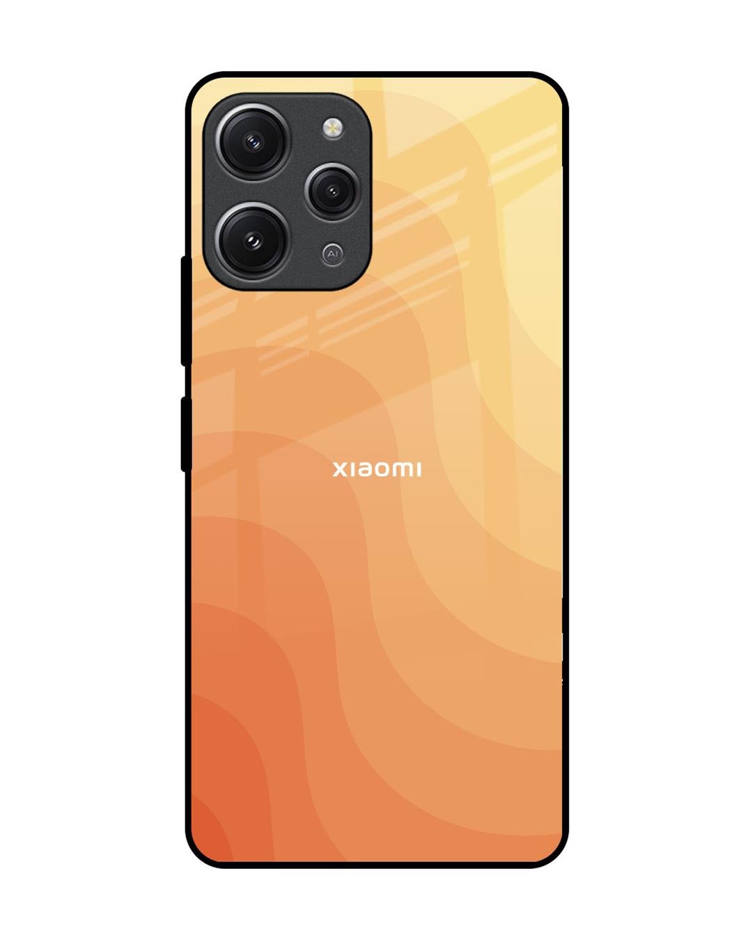Orange Curve Pattern Premium Glass Case for Xiaomi Redmi 12 (Shock Proof, Scratch Resistant)