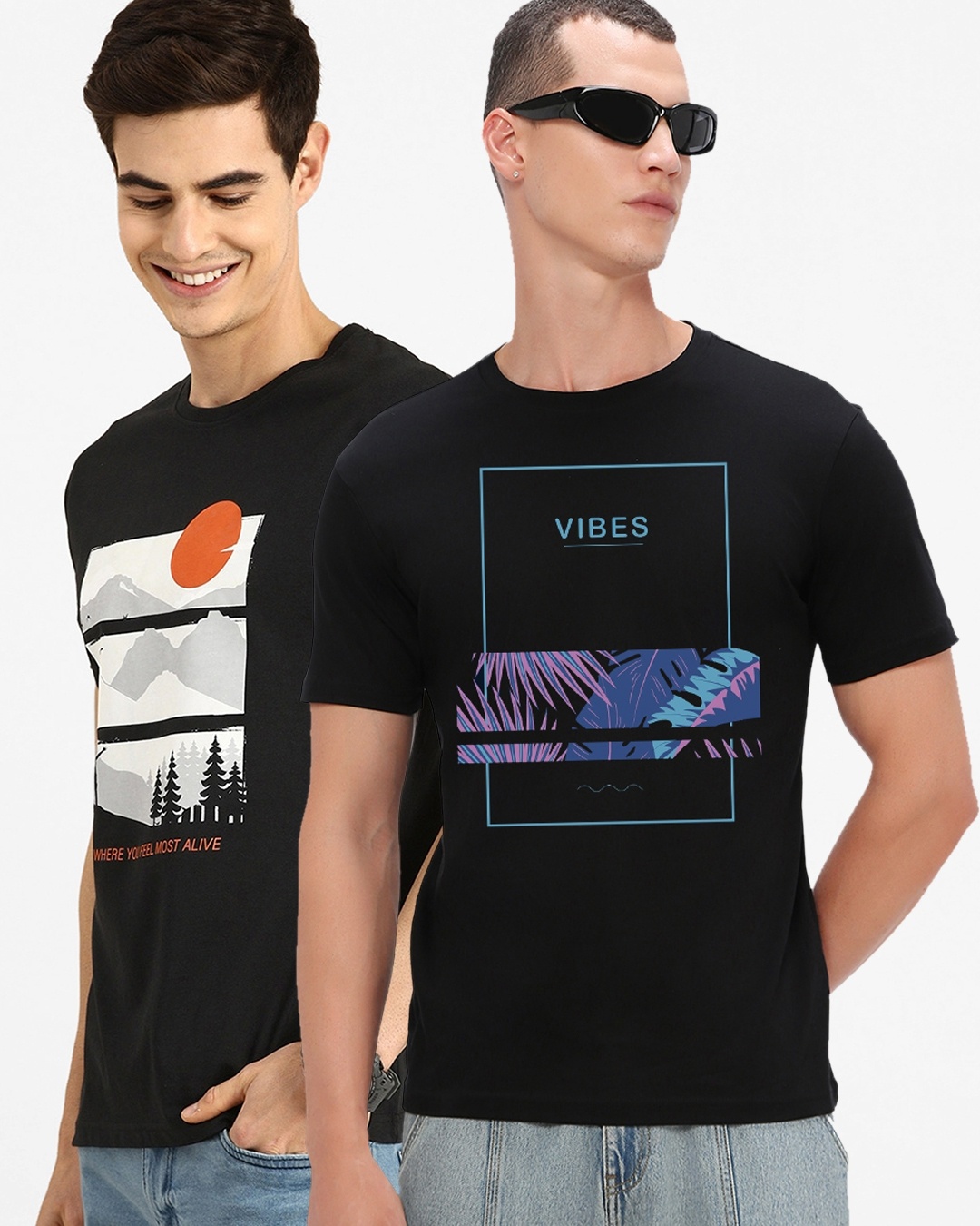 Pack of 2 Men's Black Printed T-shirts