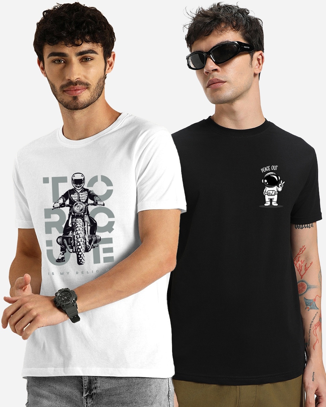 Pack of 2 Men's White & Black Printed T-shirts