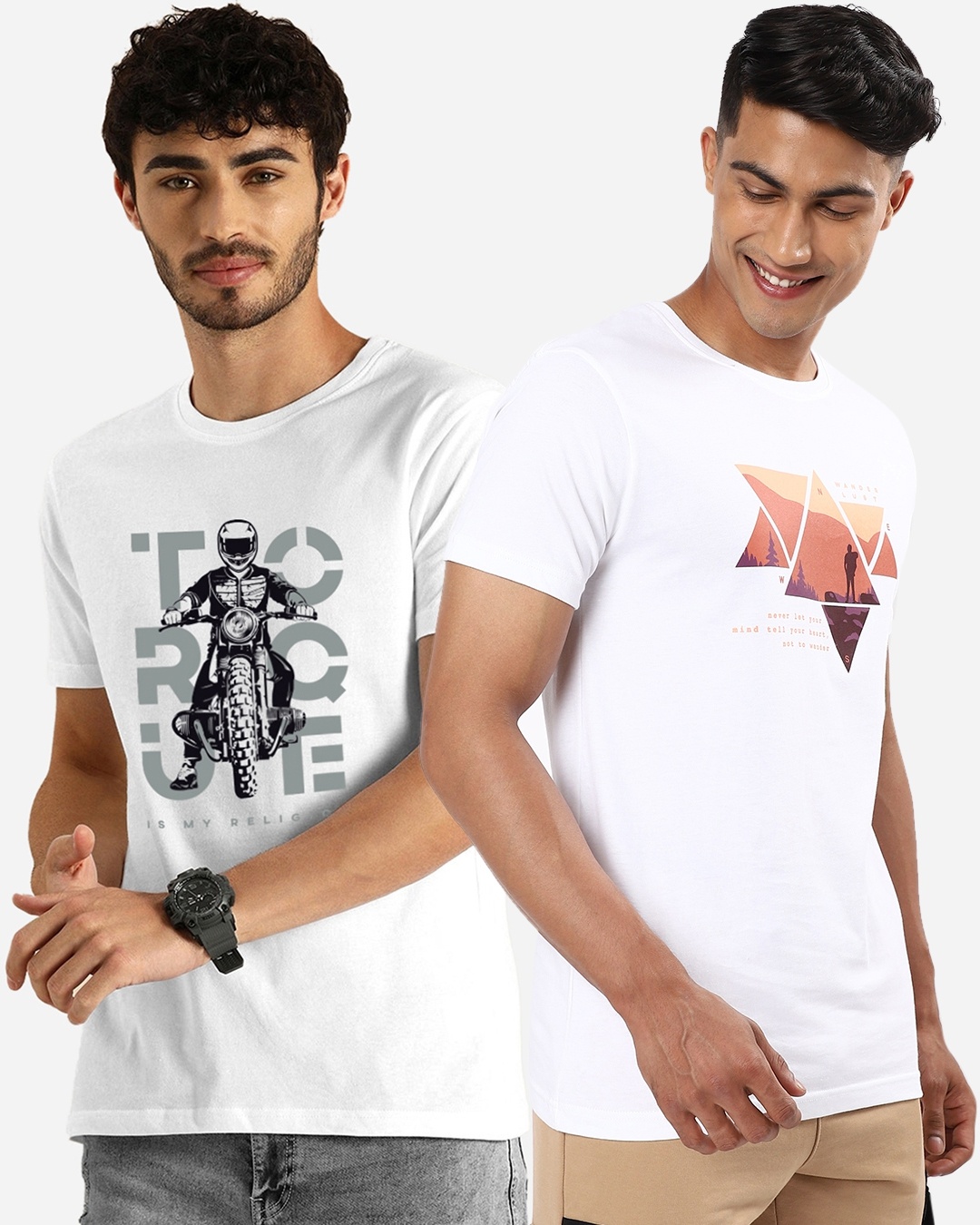 Pack of 2 Men's White Printed T-shirts