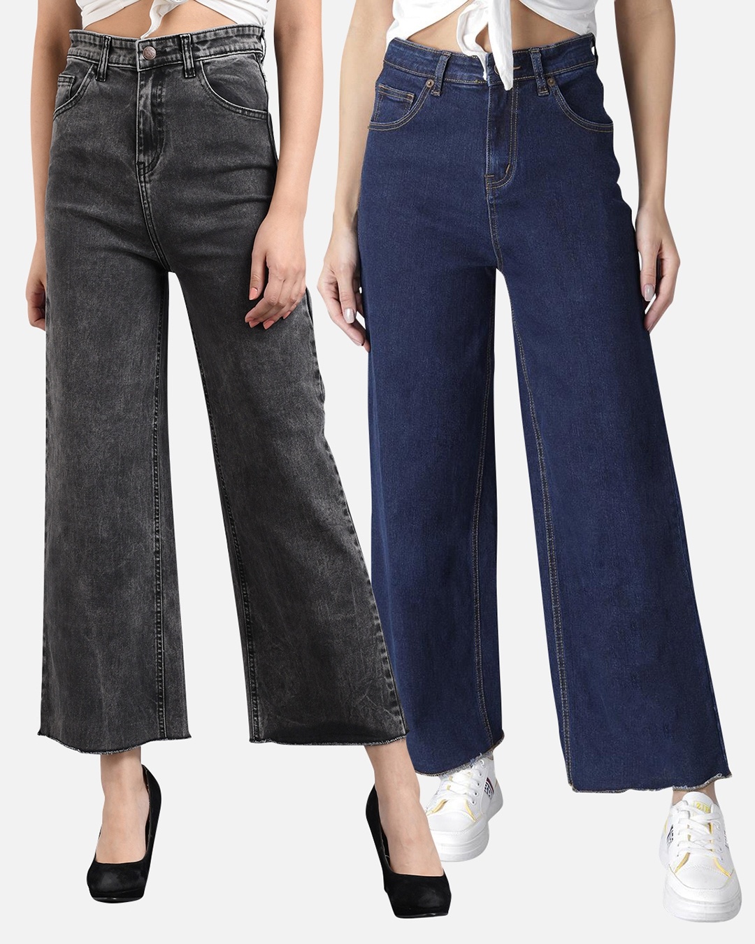 Pack of 2 Women's Grey & Blue Flared Jeans