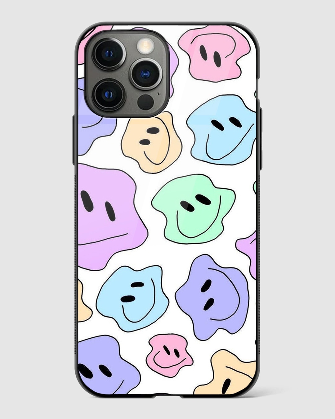 Pastel Colorful Dripping Smiley Premium Glass Case for Apple iPhone 14 Pro Max
