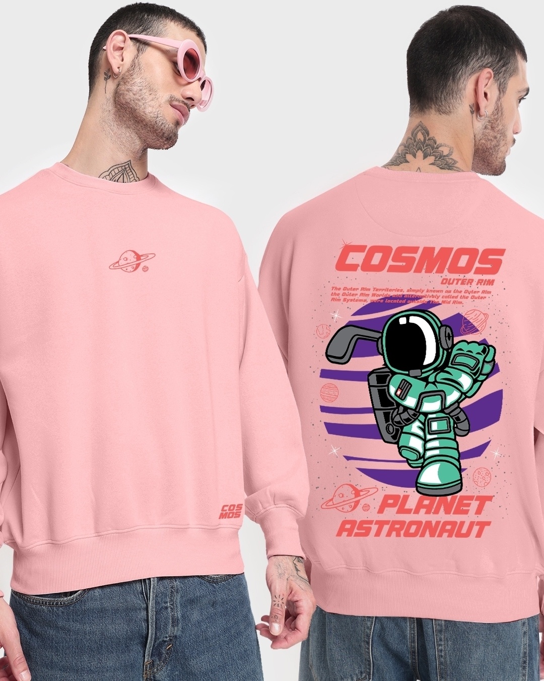 Men's Pink Planet Astronaut Graphic Printed Oversized Sweatshirt