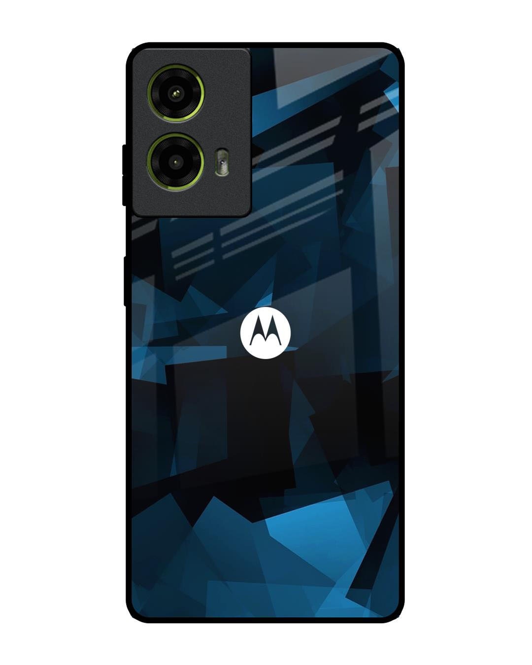 Polygonal Blue Box Premium Glass Cover for Motorola G85 5G(Shock Proof, Scratch Resistant)