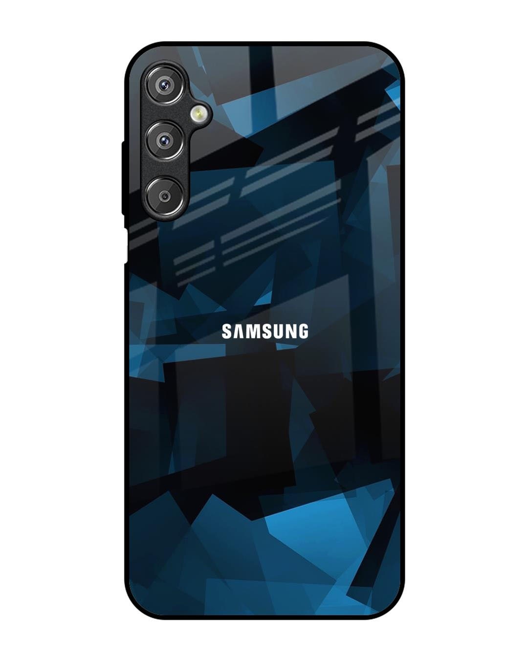 Polygonal Blue Box Premium Glass Cover for Samsung Galaxy M15 5G(Shock Proof, Scratch Resistant)