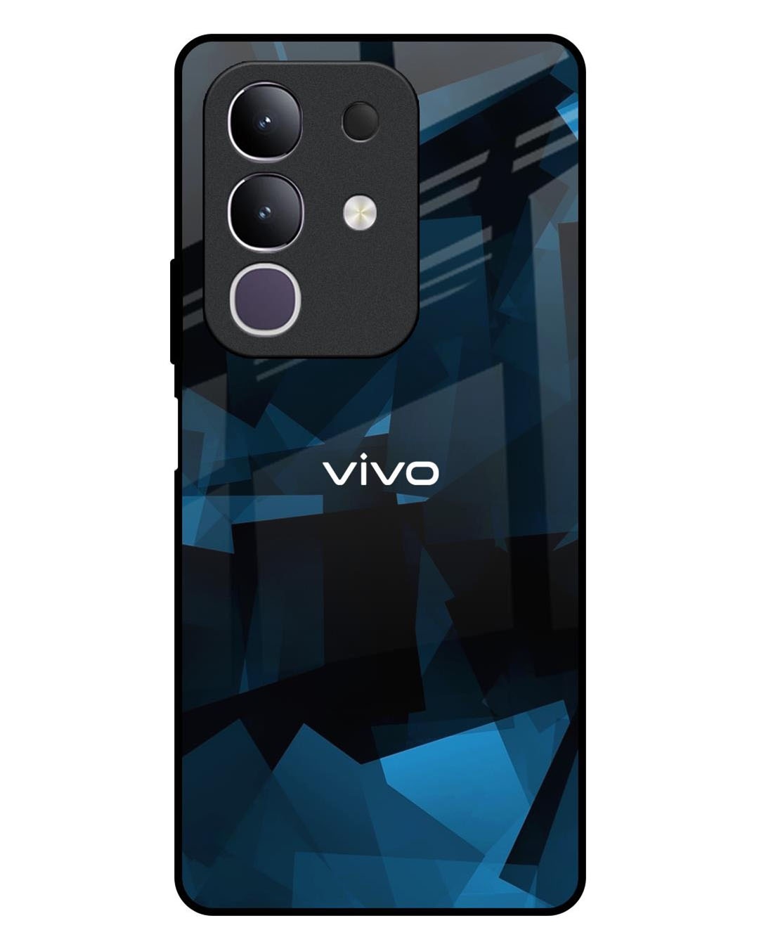 Polygonal Blue Box Premium Glass Cover For Vivo T4x 5G(Shock Proof, Scratch Resistant)