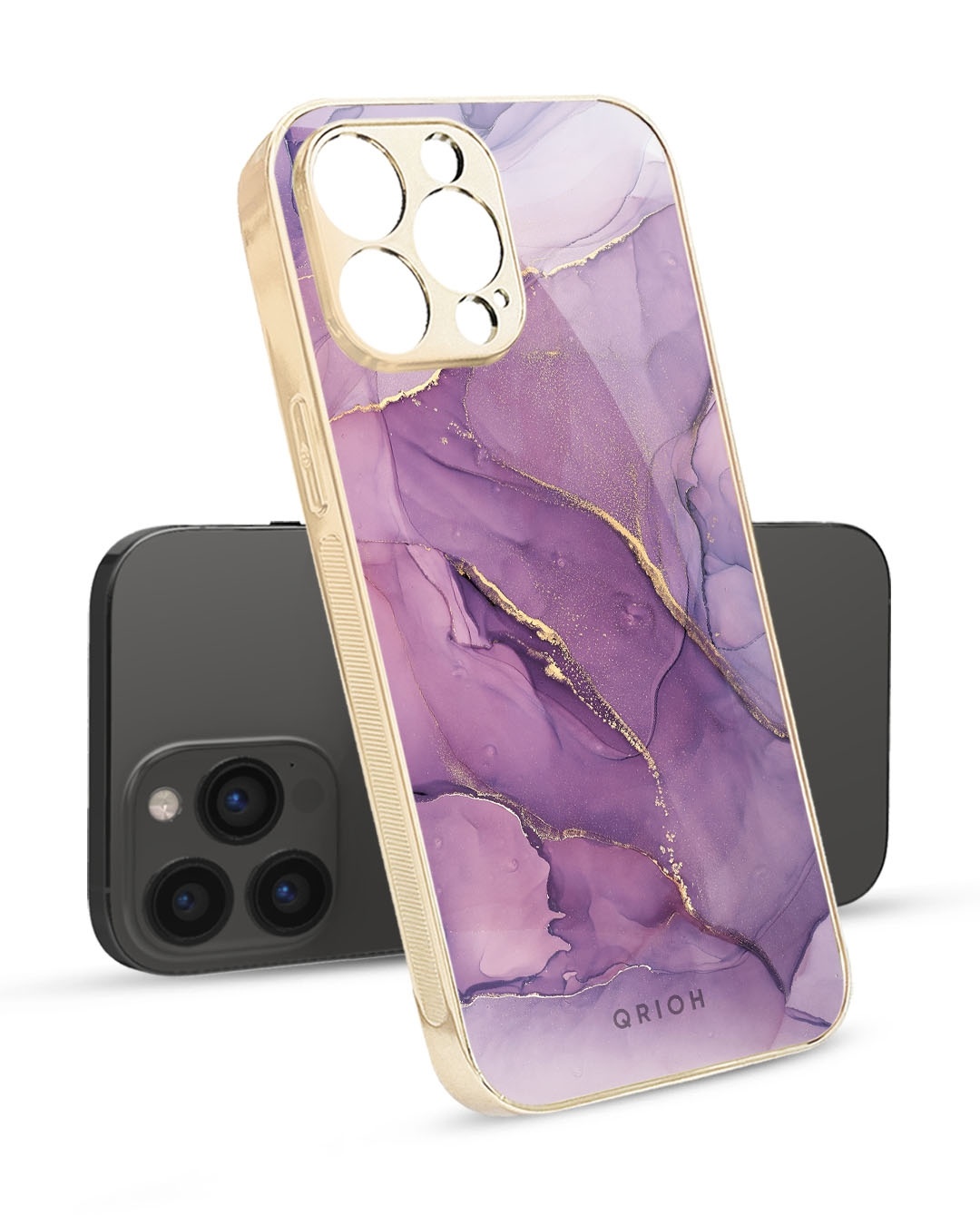 Purple Gold Marble Metallic Gold Premium Glass Case for Apple iPhone 14 Pro max
