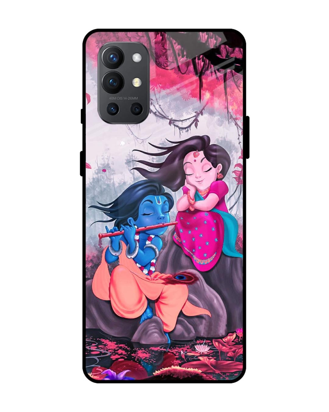 Radha Krishna Art Premium Glass Case for OnePlus 9R (Shock Proof, Scratch Resistant)