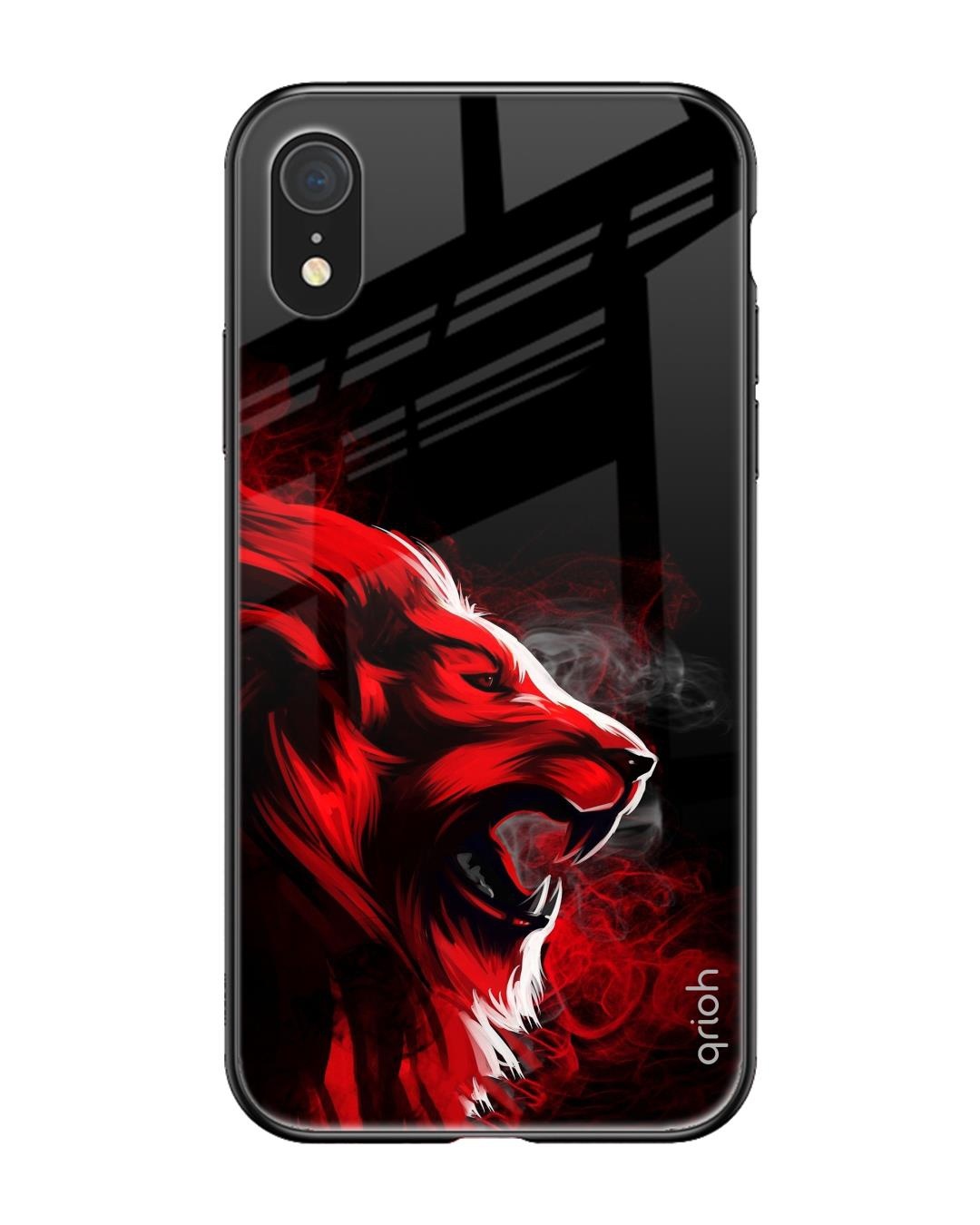 Red Angry Lion Printed Premium Glass Cover For iPhone XR (Impact Resistant, Matte Finish)