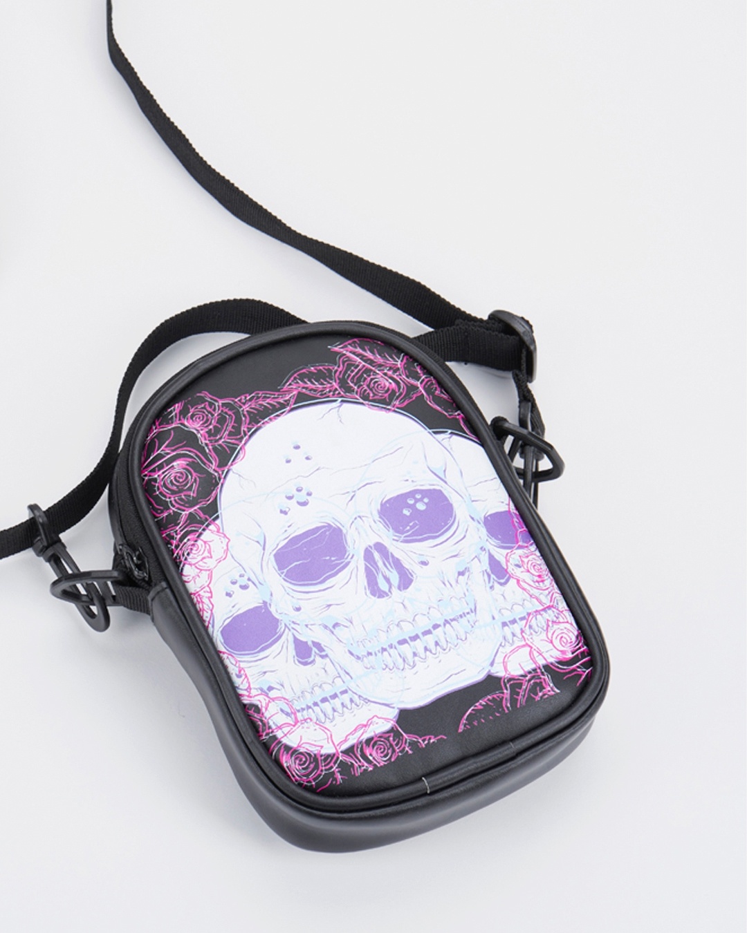Unisex Black Skull & Roses Graphic Printed Sling Bag