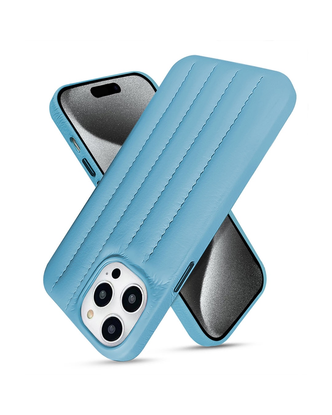 Sky Blue Stitch Leather Case for Apple iPhone 15 Pro Max