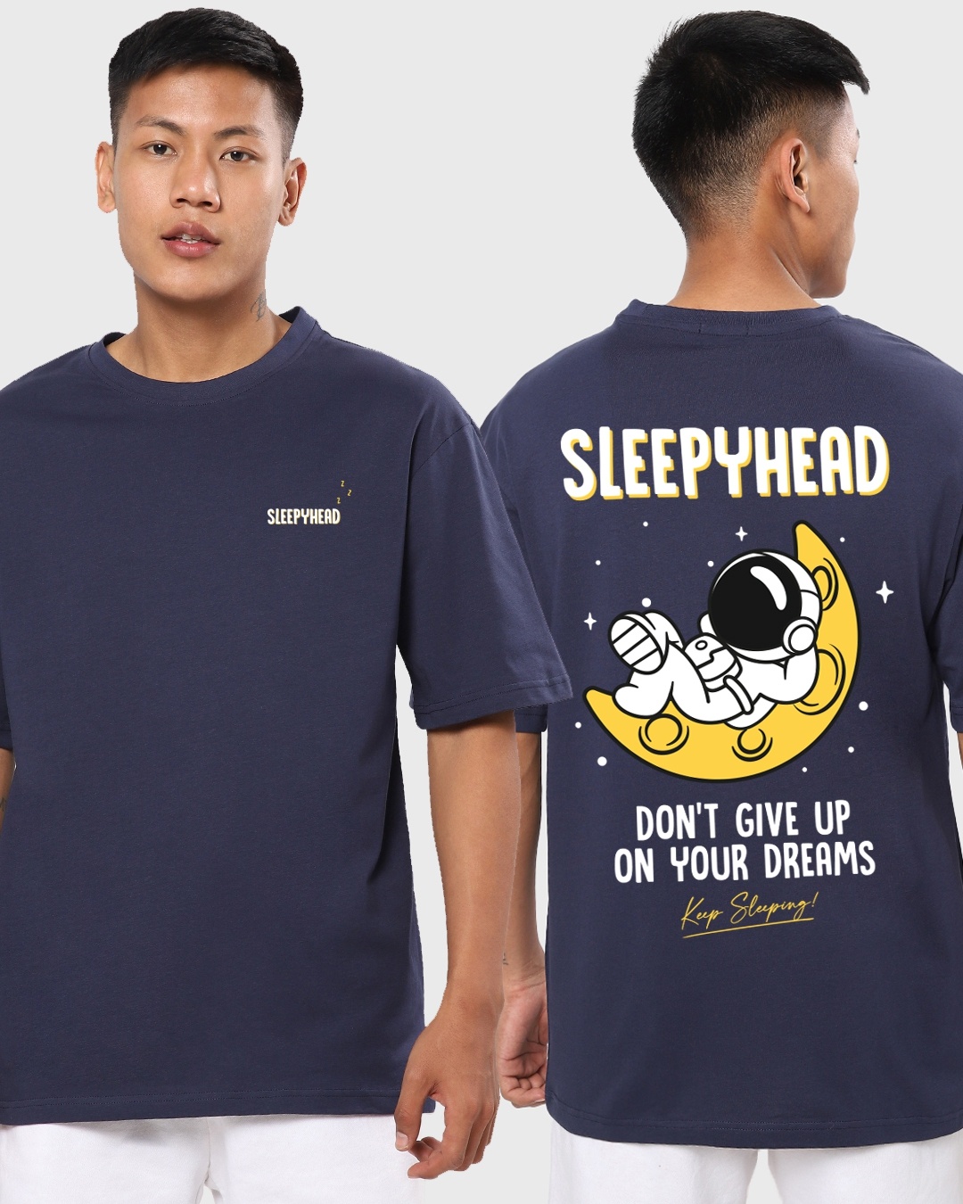 Men's Blue Sleepy Head Graphic Printed Oversized T-shirt