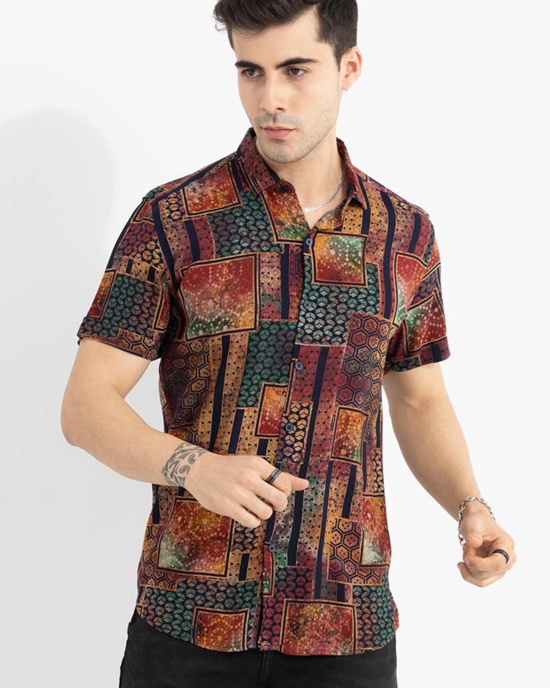 Men's Brown Abstract Printed Slim Fit Shirt