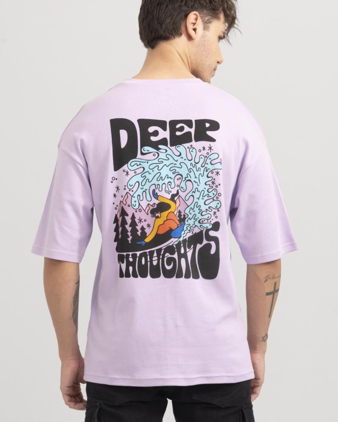 Snitch Men's Purple Thoughts Run Deep Graphic Printed Oversized T-shirt