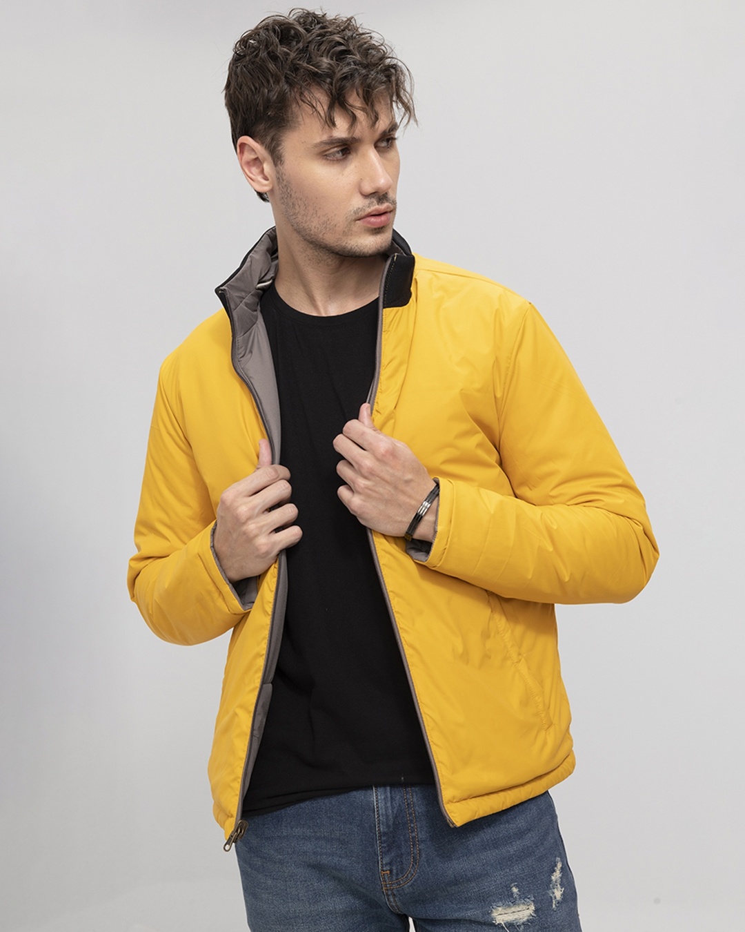 Snitch Men's Yellow Slim Fit Reversible Puffer Jacket