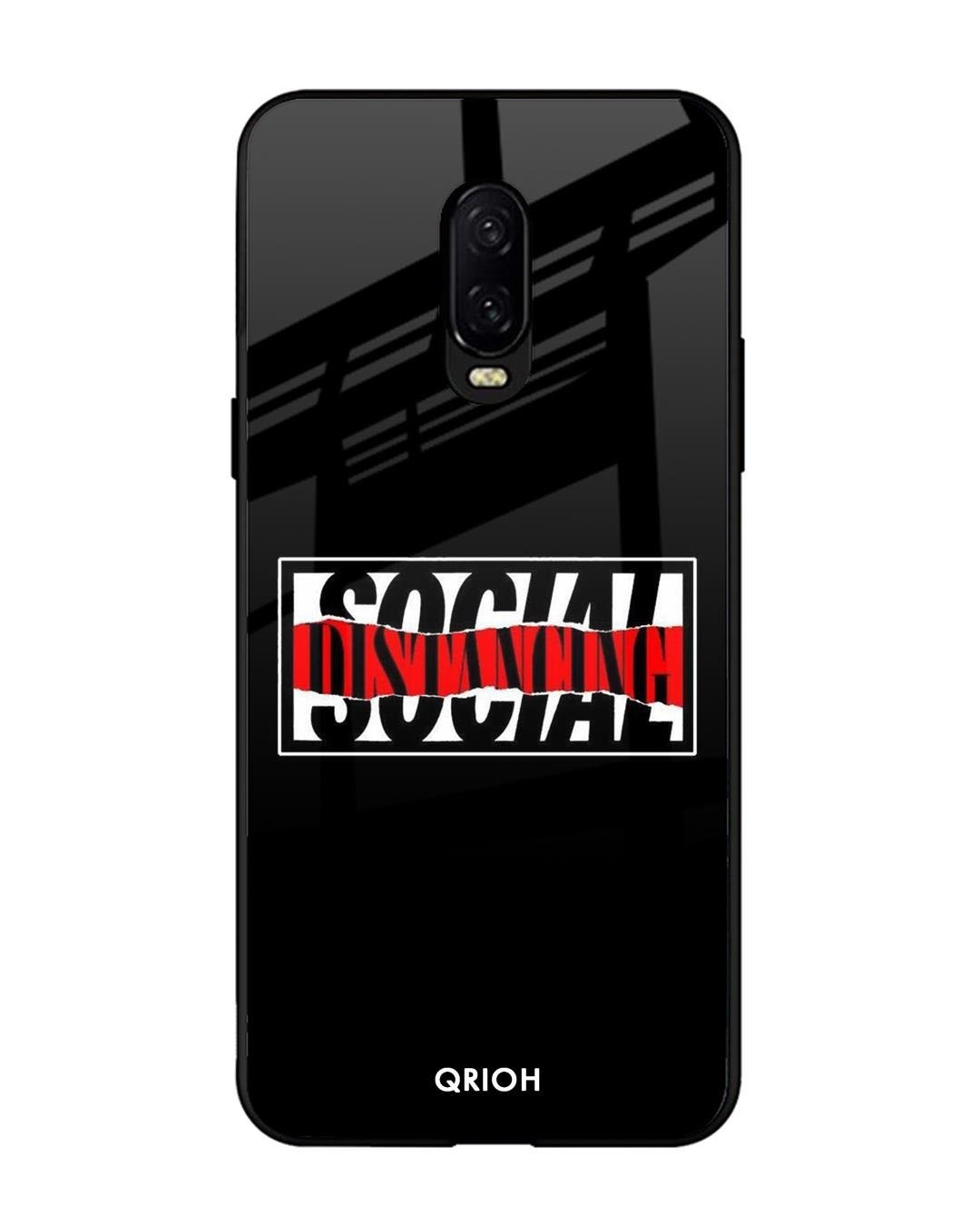 Social Distance Premium Glass Case for OnePlus 6T (Shock Proof, Scratch Resistant)