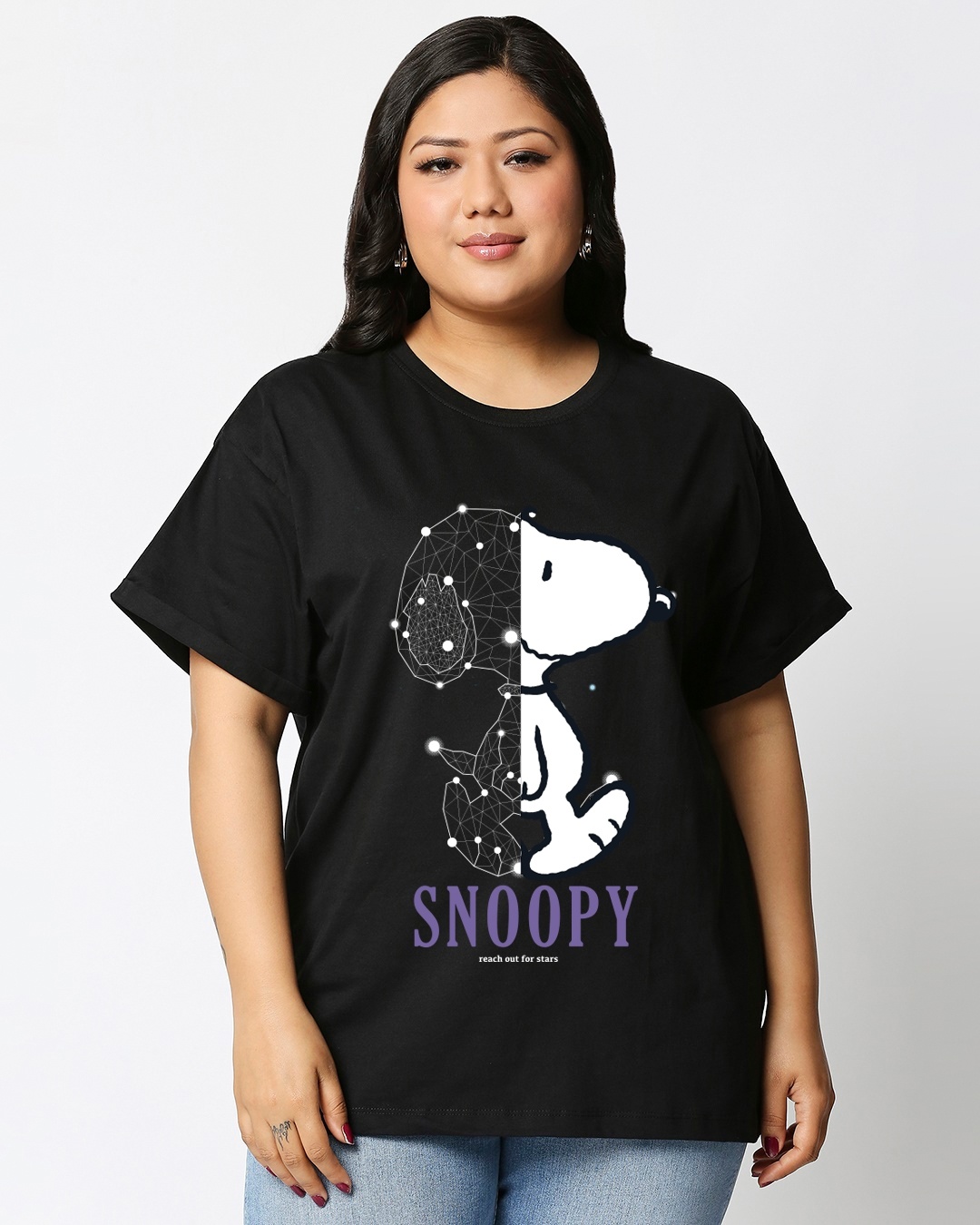 Women's Black Star Snoopy Graphic Printed Boyfriend Plus Size T-shirt