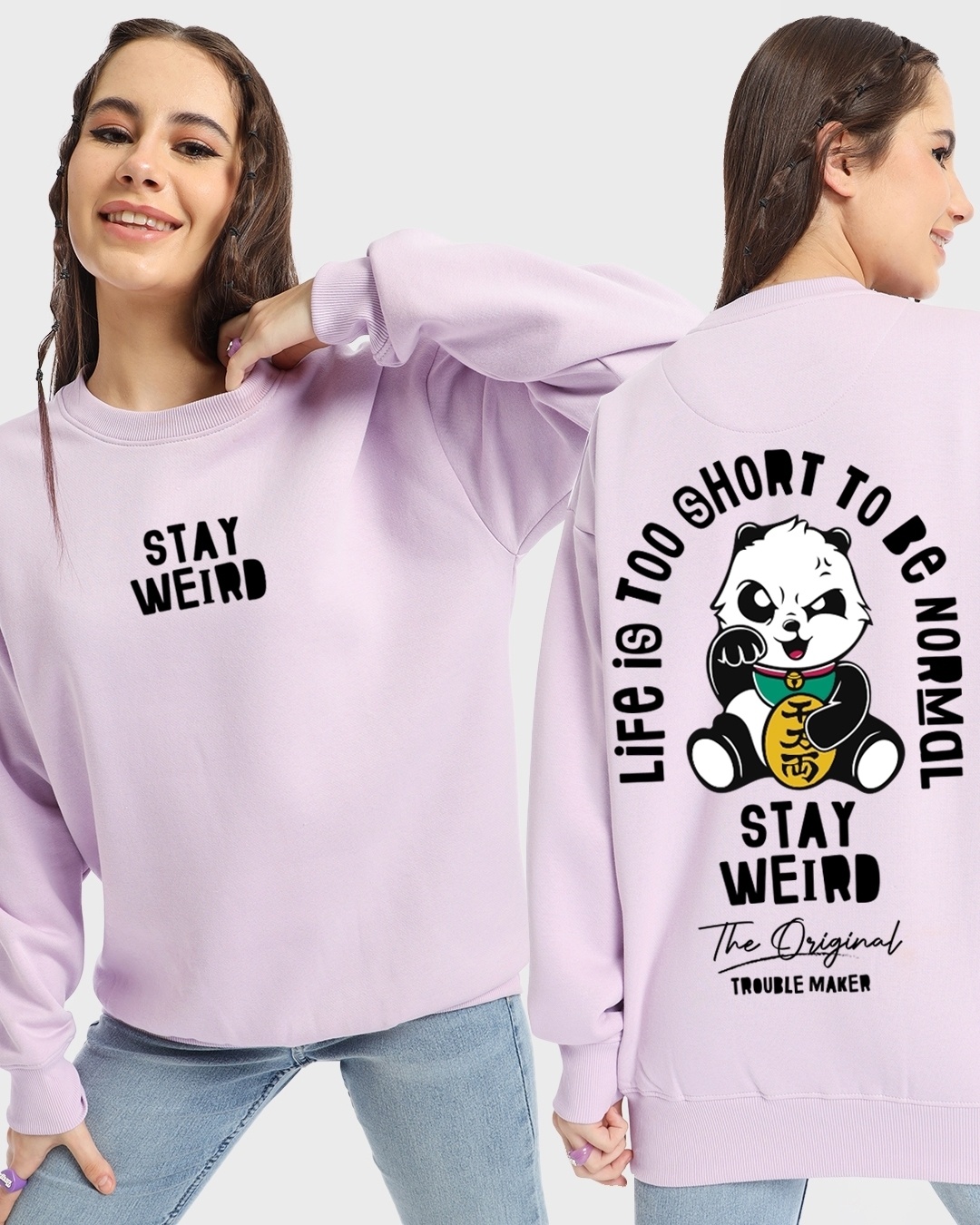 Women's Lilac Stay Weird Typography Oversized Sweatshirt