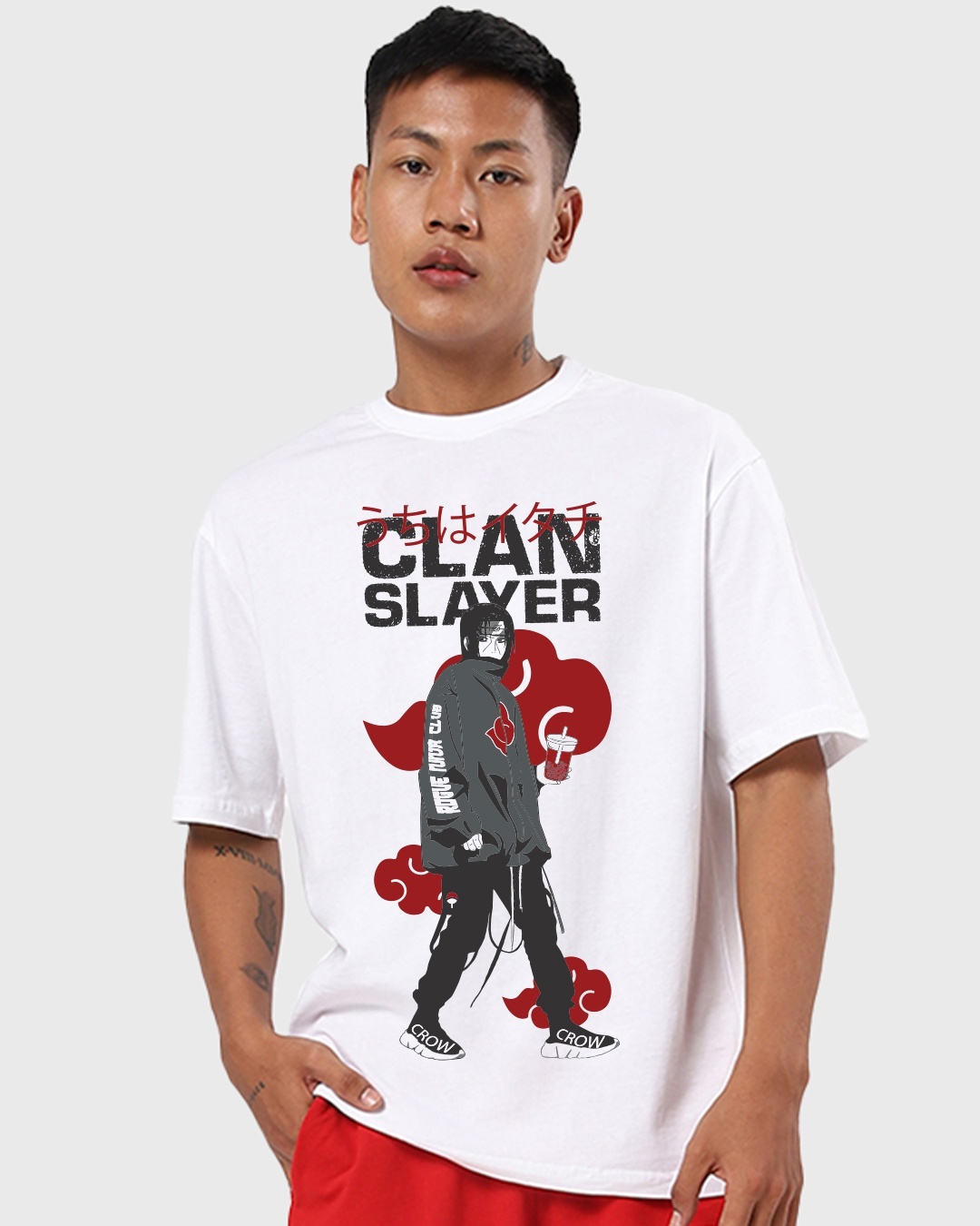 Men's White Street Crow Graphic Printed Oversized T-shirt