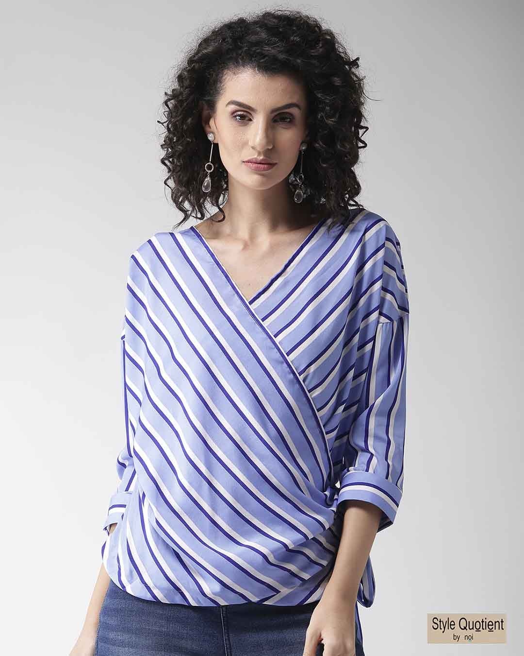 Women's Blue & White Striped Wrap Top