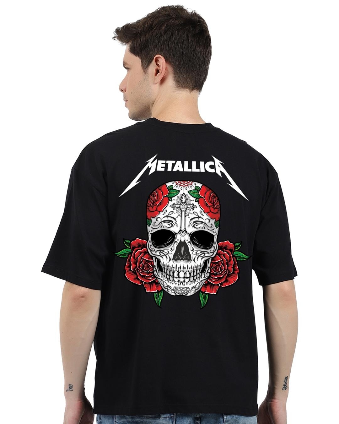 Men's Black Metallica Graphic Printed Oversized T-shirt