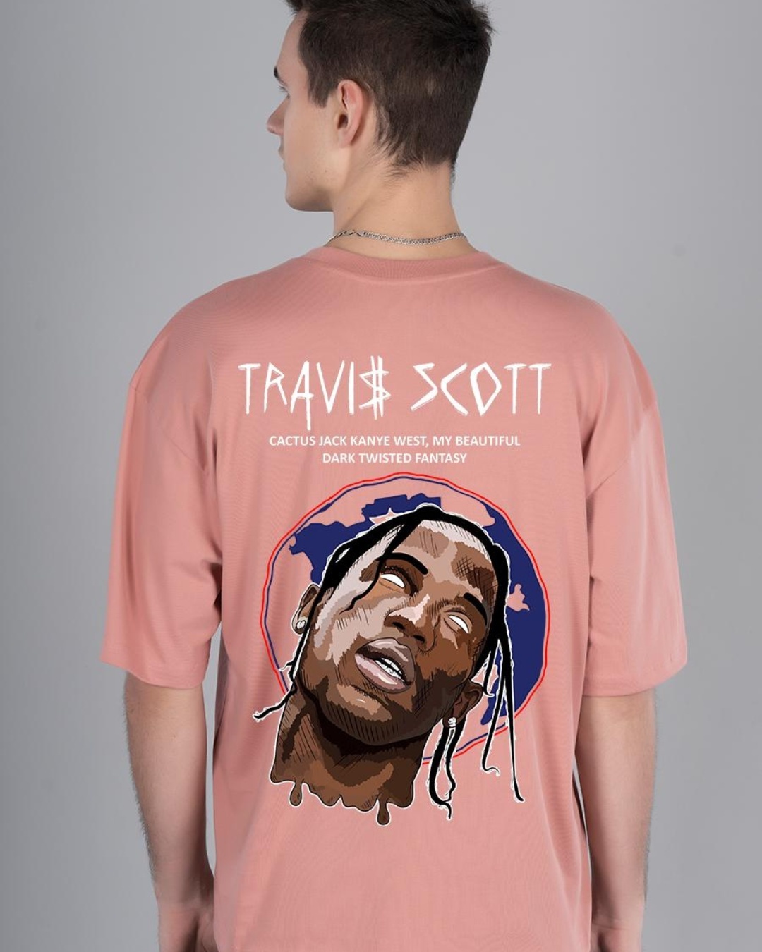 Men's Pink Scott Graphic Printed Oversized T-shirt