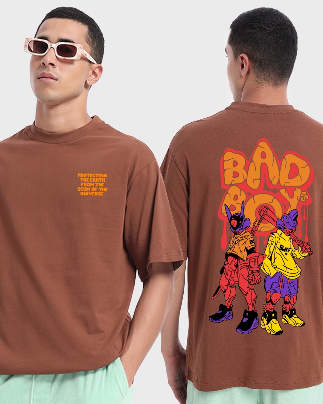 Men's Brown The Saviour Graphic Printed Oversized T-shirt