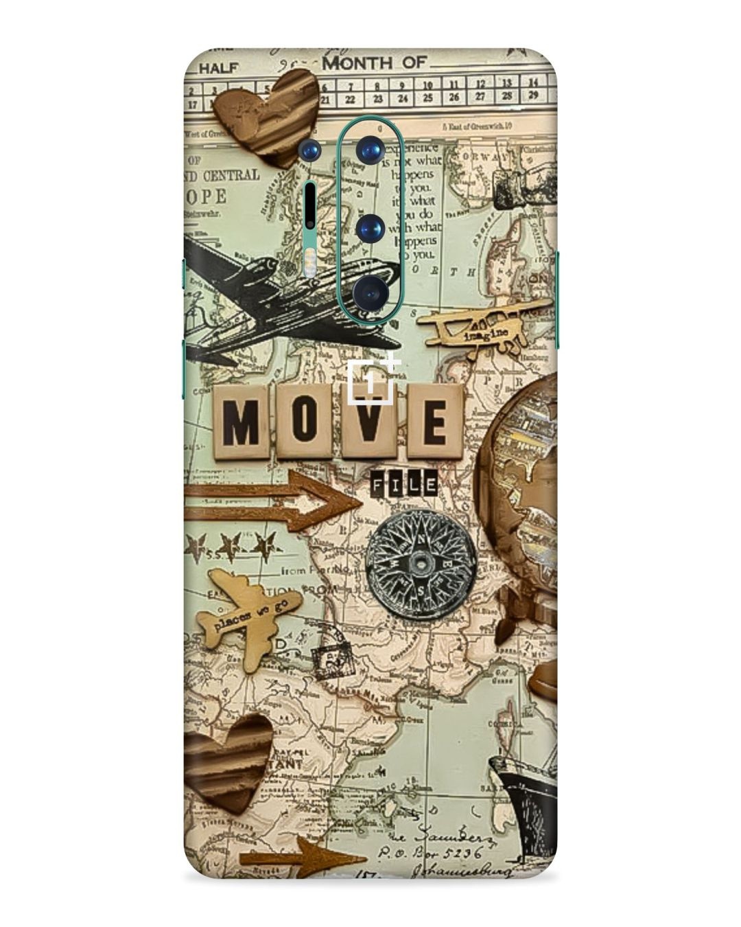 Brown Travel Map Printed Mobile Skin for OnePlus 8 Pro