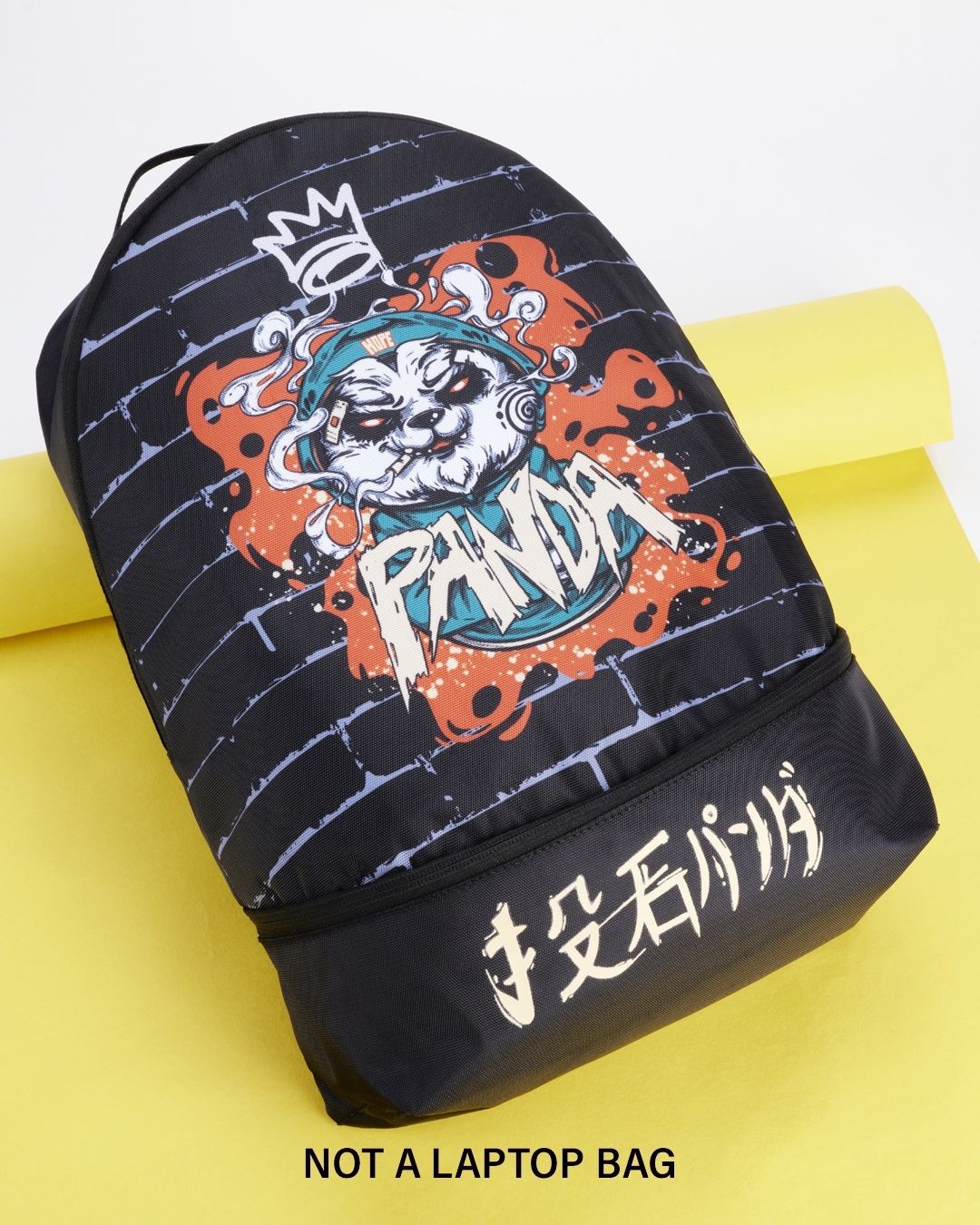 Unisex Black Stoned Panda Graphic Printed Small Backpack