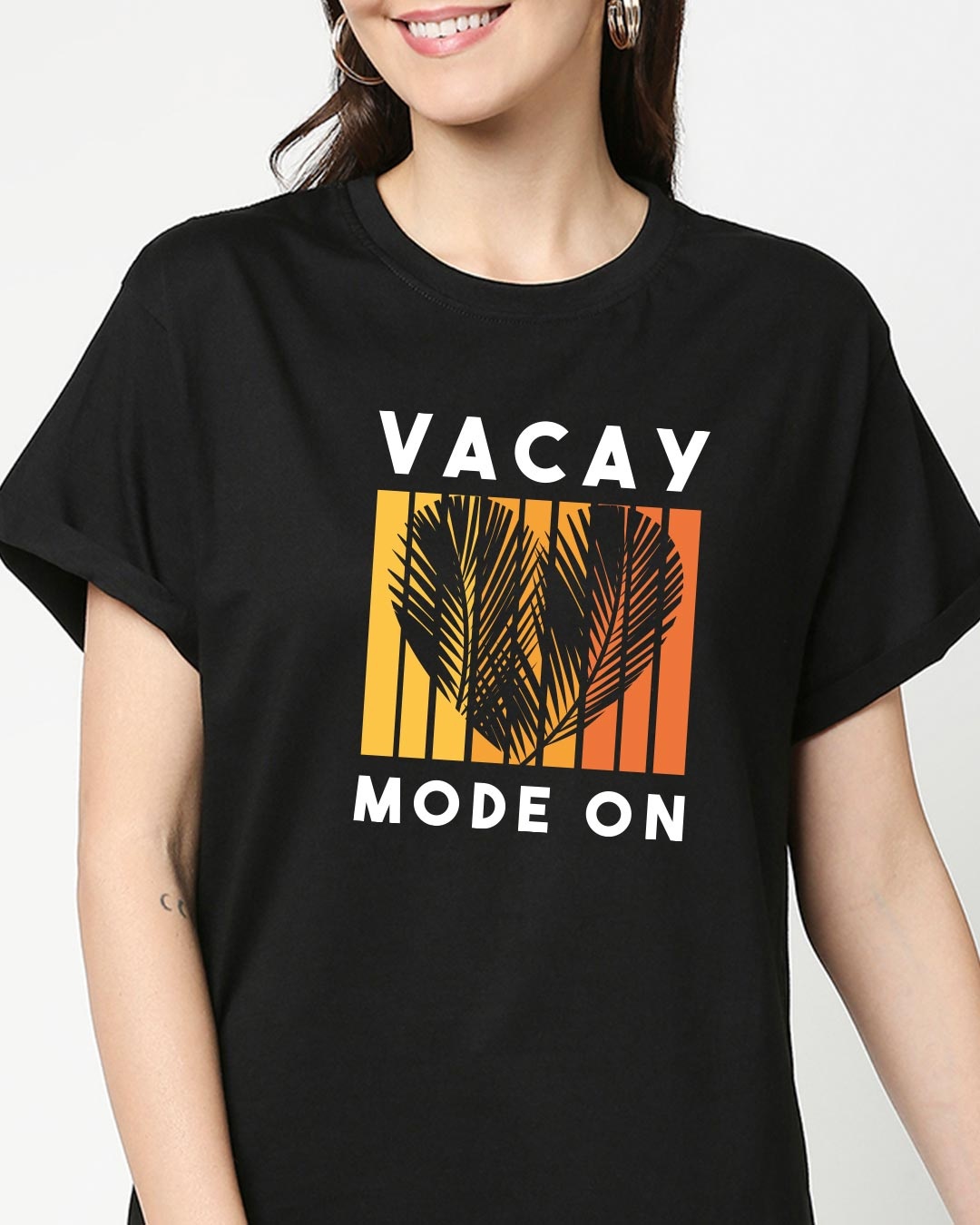 Women's Black Vacay Sunset Graphic Printed Boyfriend T-shirt