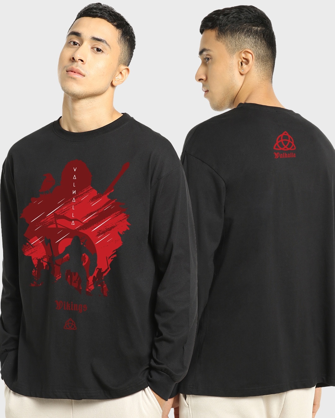 Men's Black War Cry Valhalla Graphic Printed Oversized T-shirt