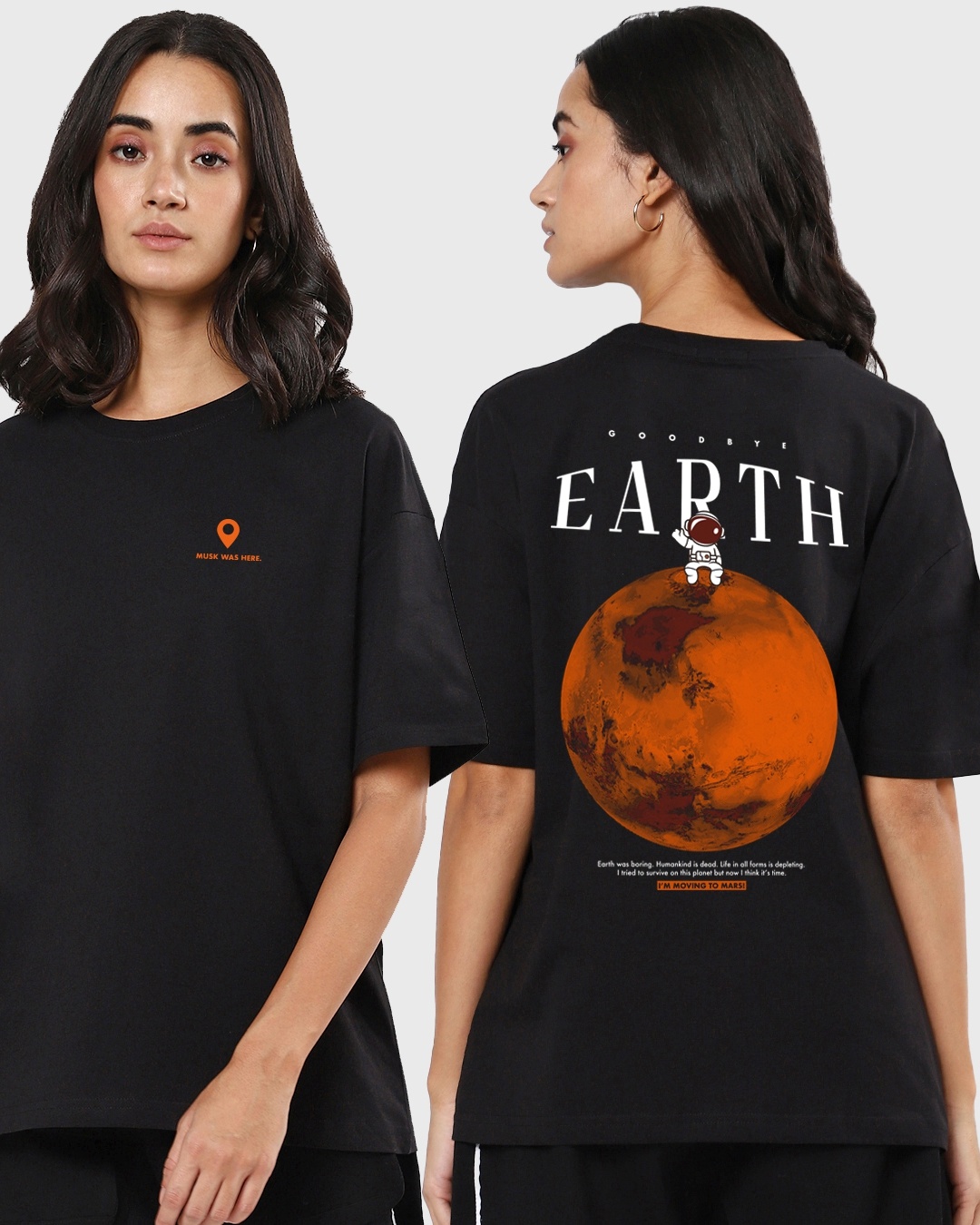Women's Black Goodbye Earth Graphic Printed Oversized T-shirt