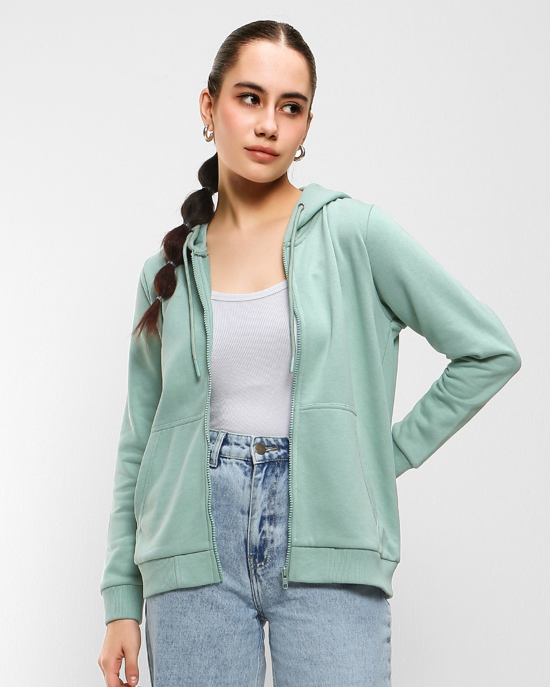 Women's Cyan Zipper Hoodies