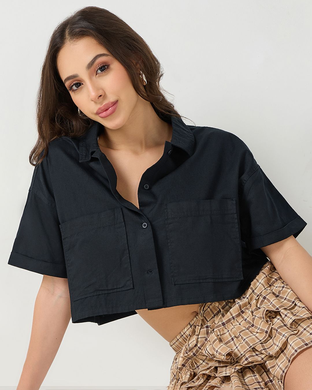 Women's Black Oversized Cropped Shirt