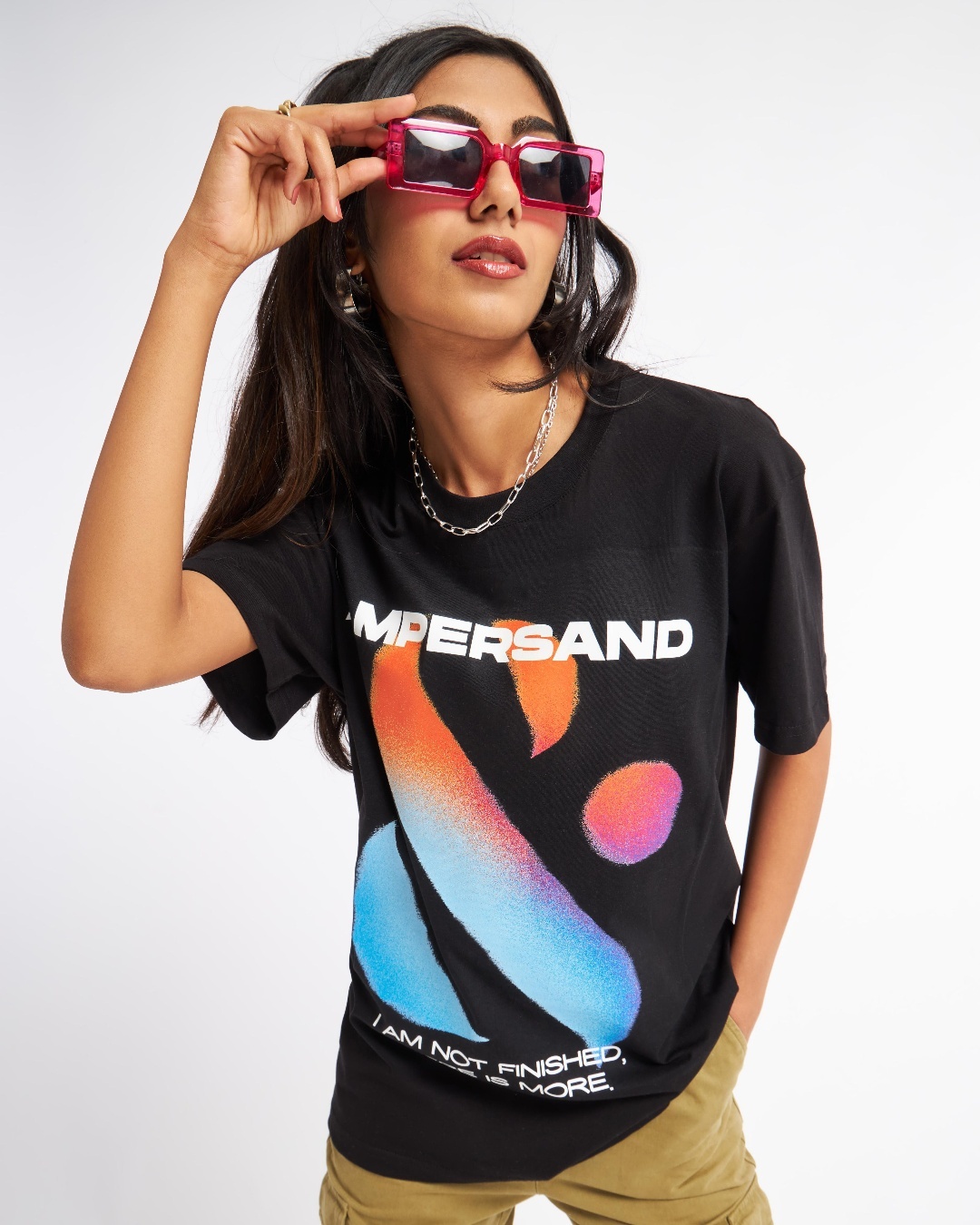Women's Black Ampersand Graphic Printed Oversized T-shirt 1