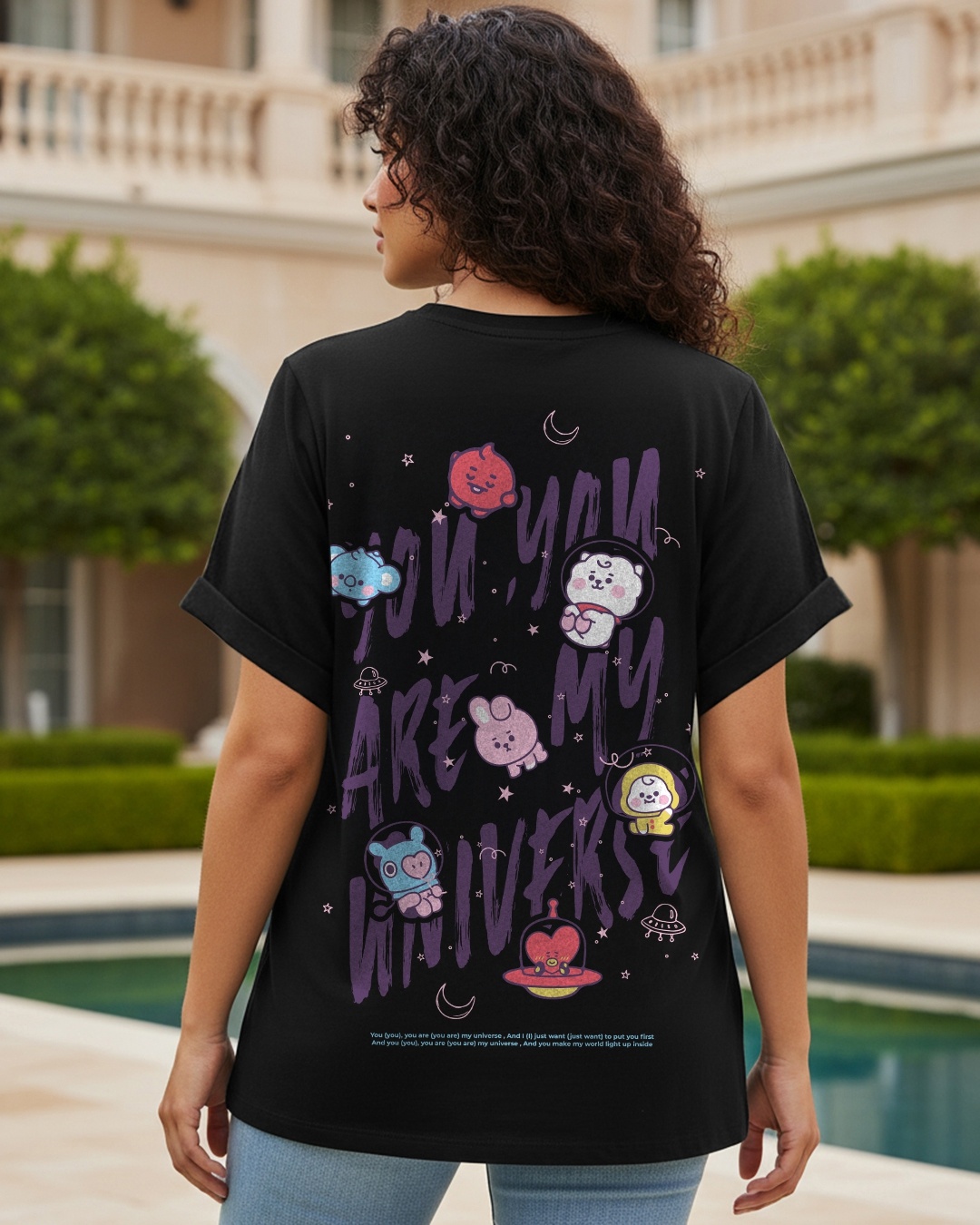 Women's Black BTS My Universe Graphic Printed Plus Size Boyfriend T-shirt