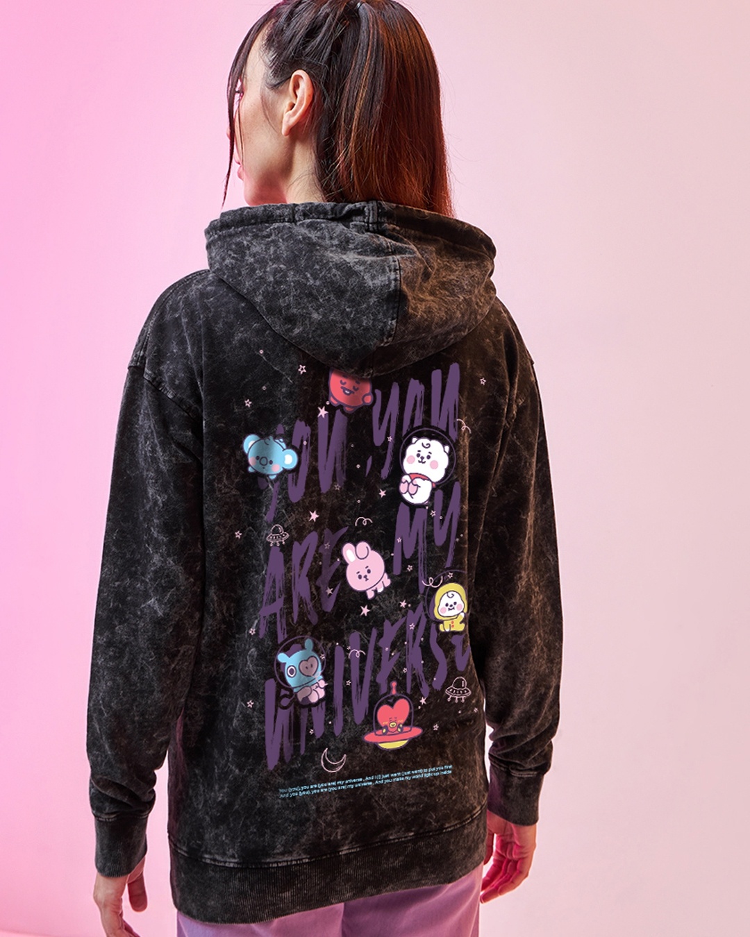 Women's Black BTS My Universe Graphic Printed Oversized Hoodies