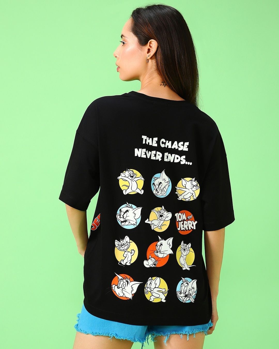 Women's Black Chase Never Ends Graphic Printed Oversized T-shirt