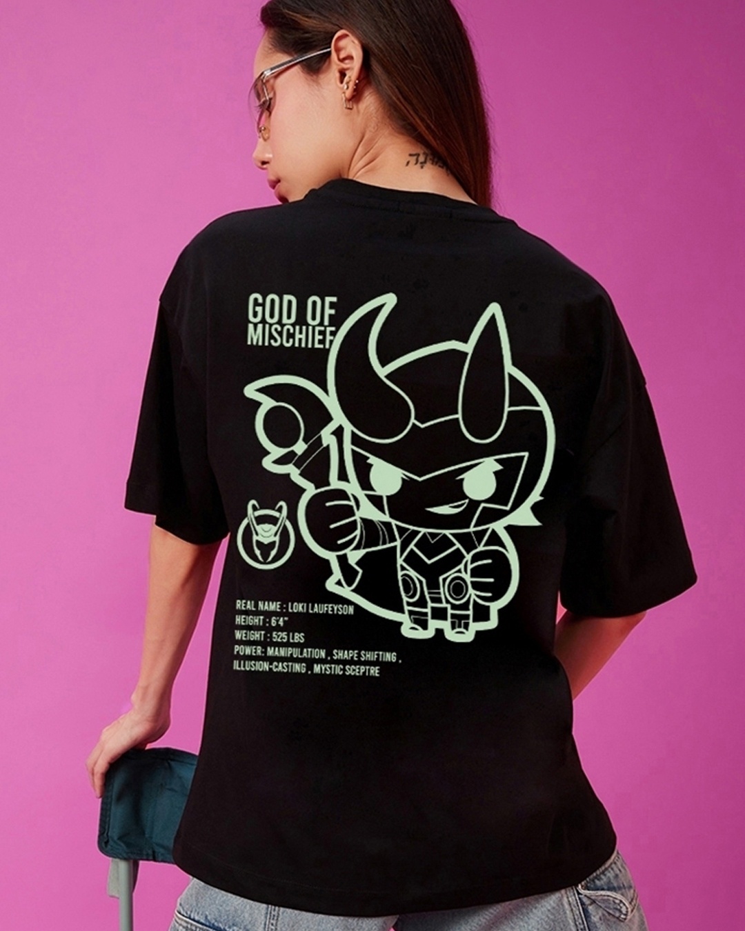 Women's Black Chibi Loki Graphic Printed Oversized T-shirt