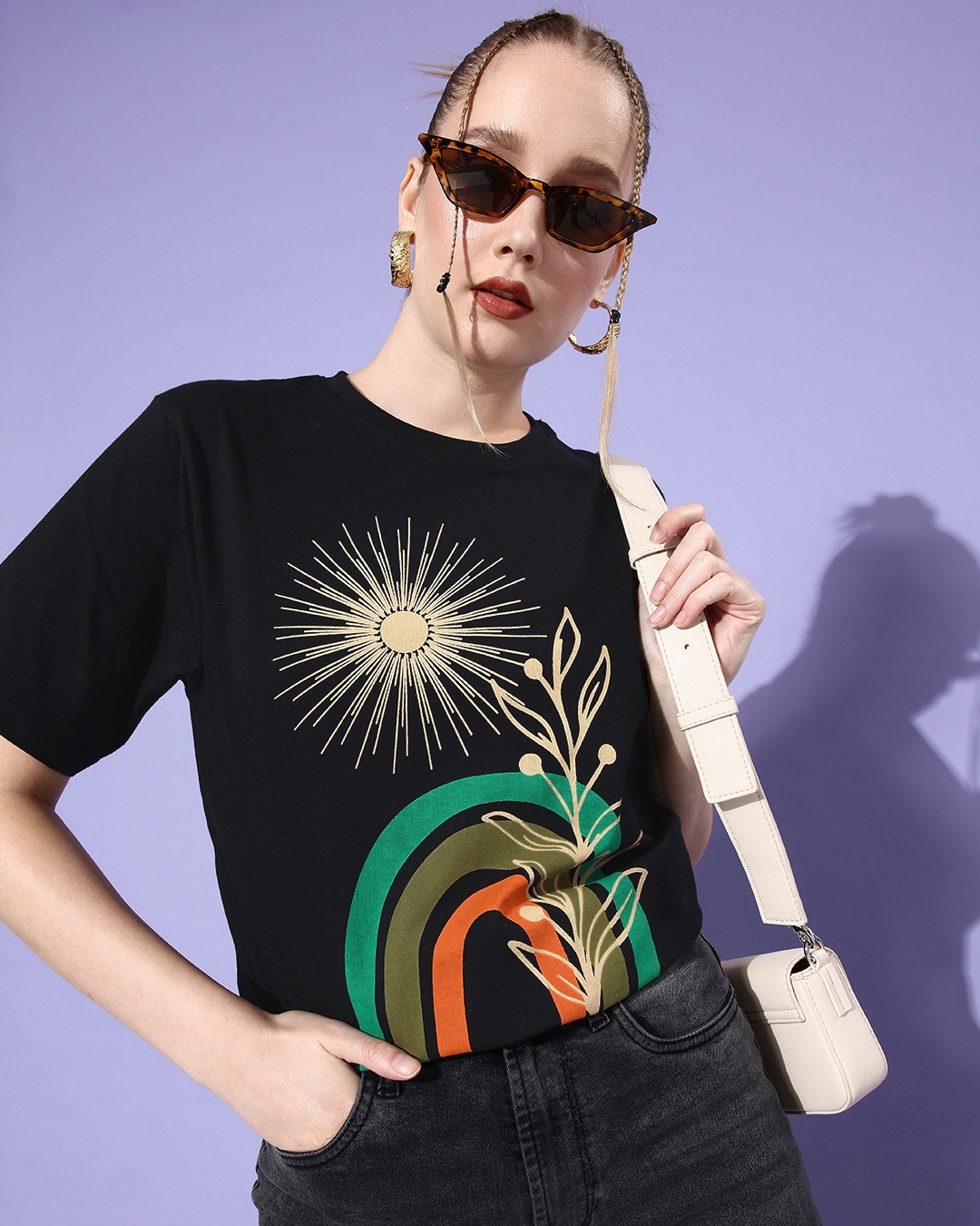 Women's Black Graphic Printed Oversized T-shirt