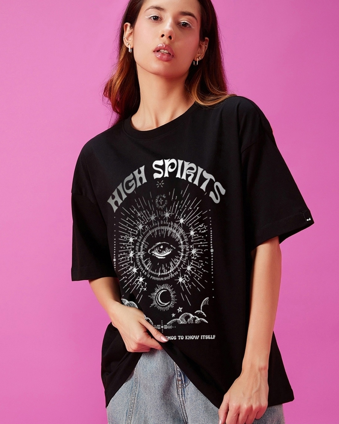Women's Black High Spirits Graphic Printed Oversized T-shirt