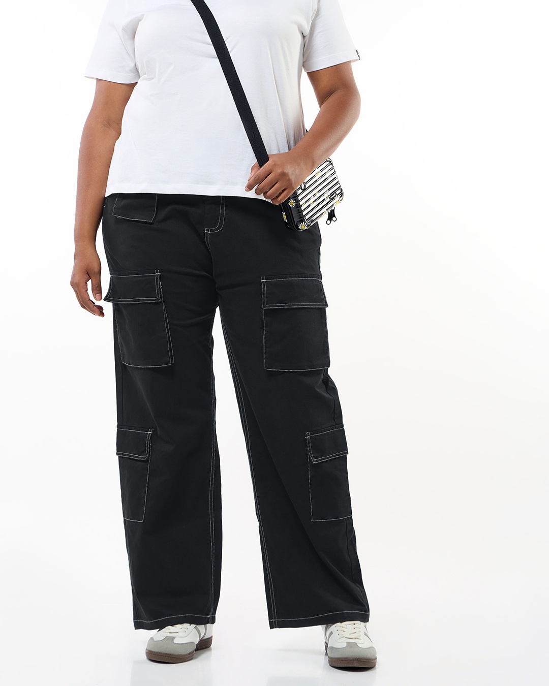 Women's Black Oversized Plus Size Cargo Pants