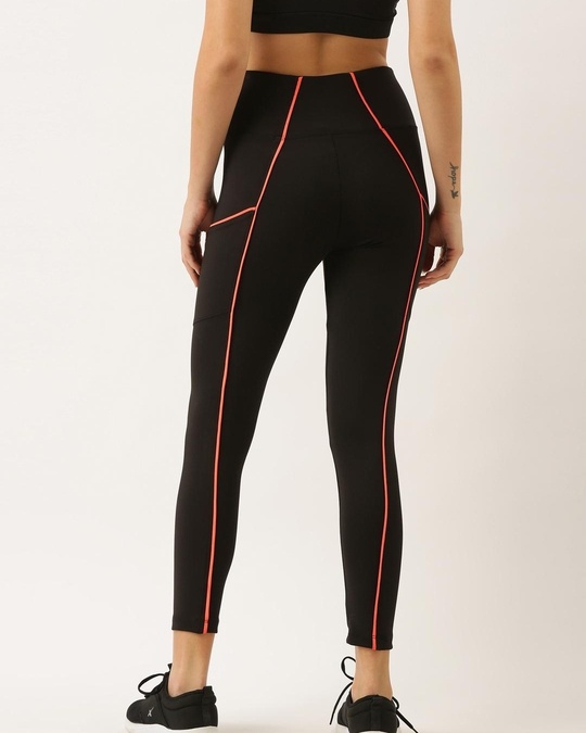 Women's Black & Pink Piping Skinny Fit Tights