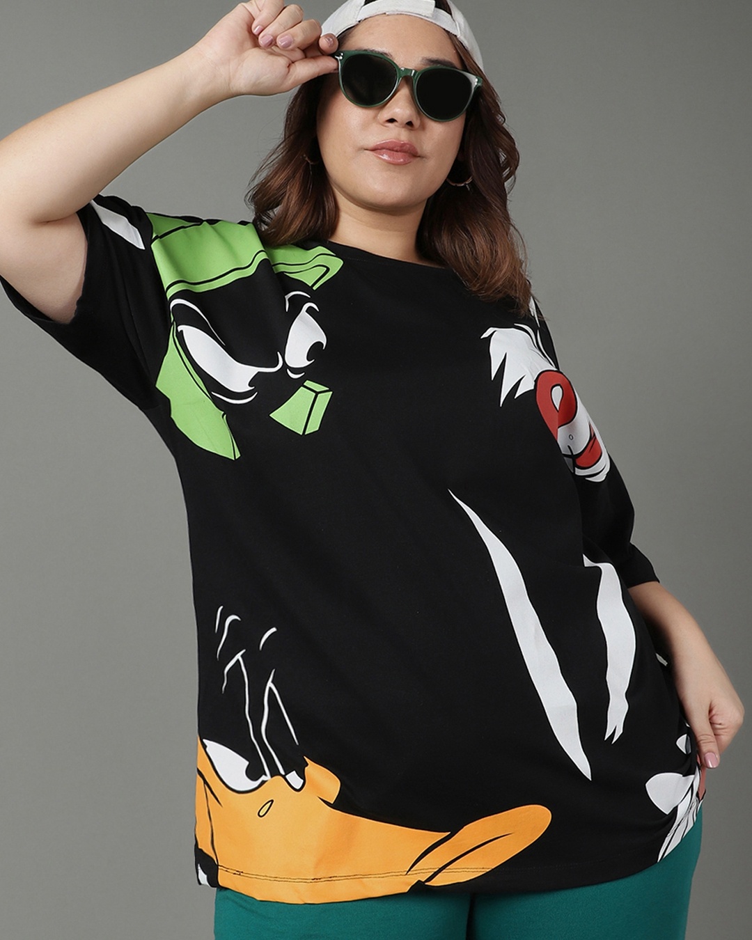Women's Black Graphic Printed Oversized Plus Size T-shirt