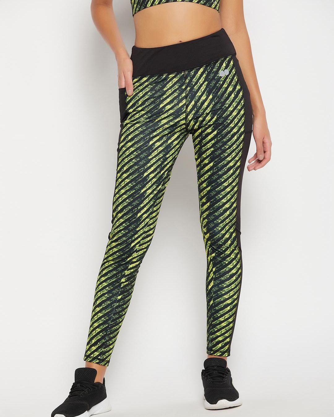 Women's Black Printed Slim Fit Tights