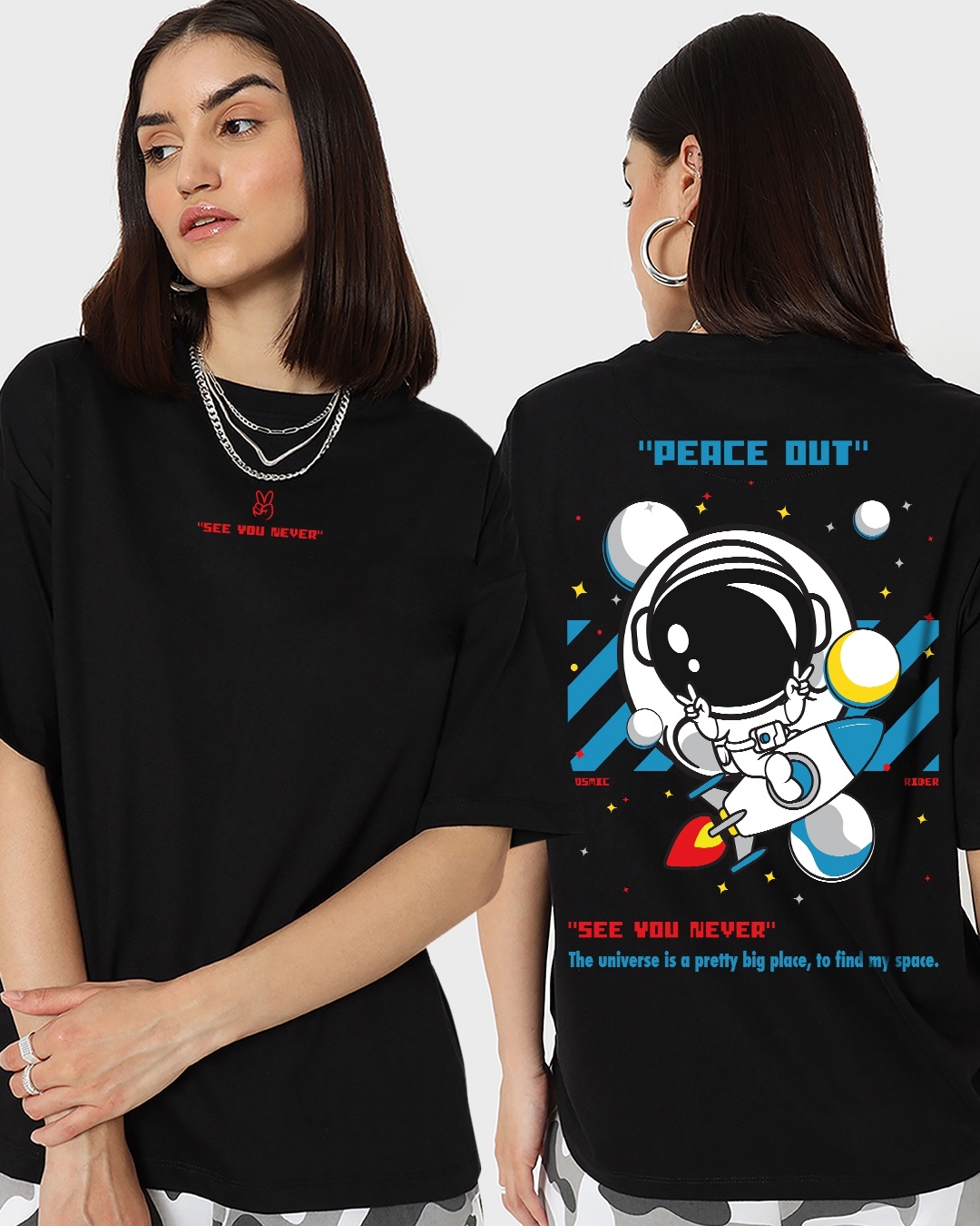 Women's Black See You Never Graphic Printed Oversized T-shirt