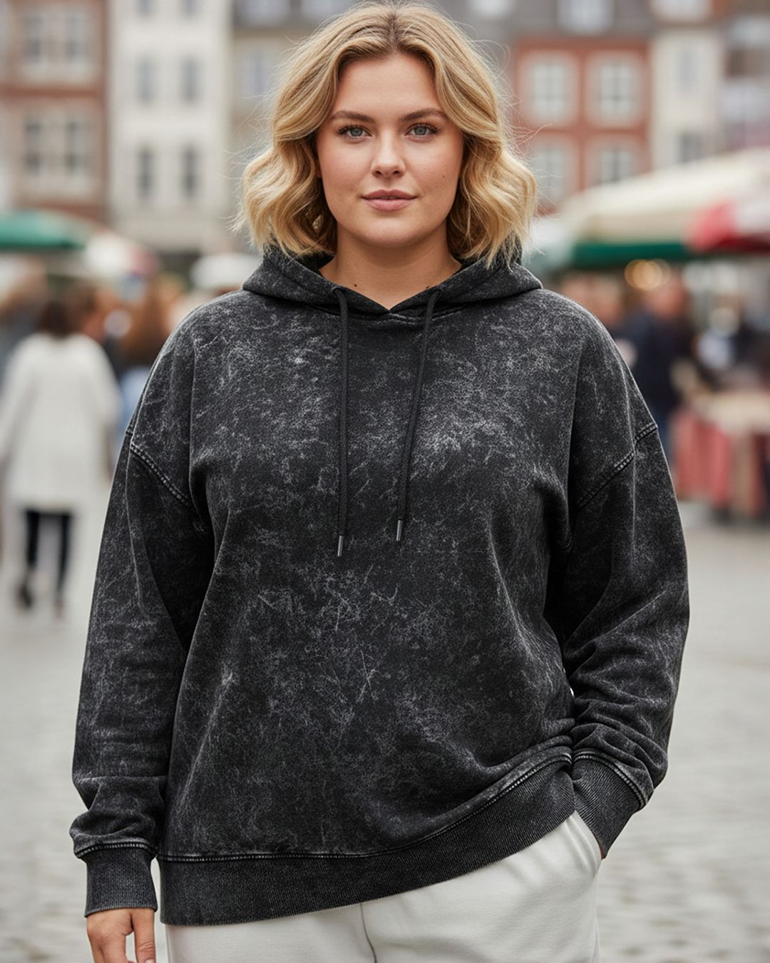 Women's Black Acid Wash Oversized Plus Size Hoodies