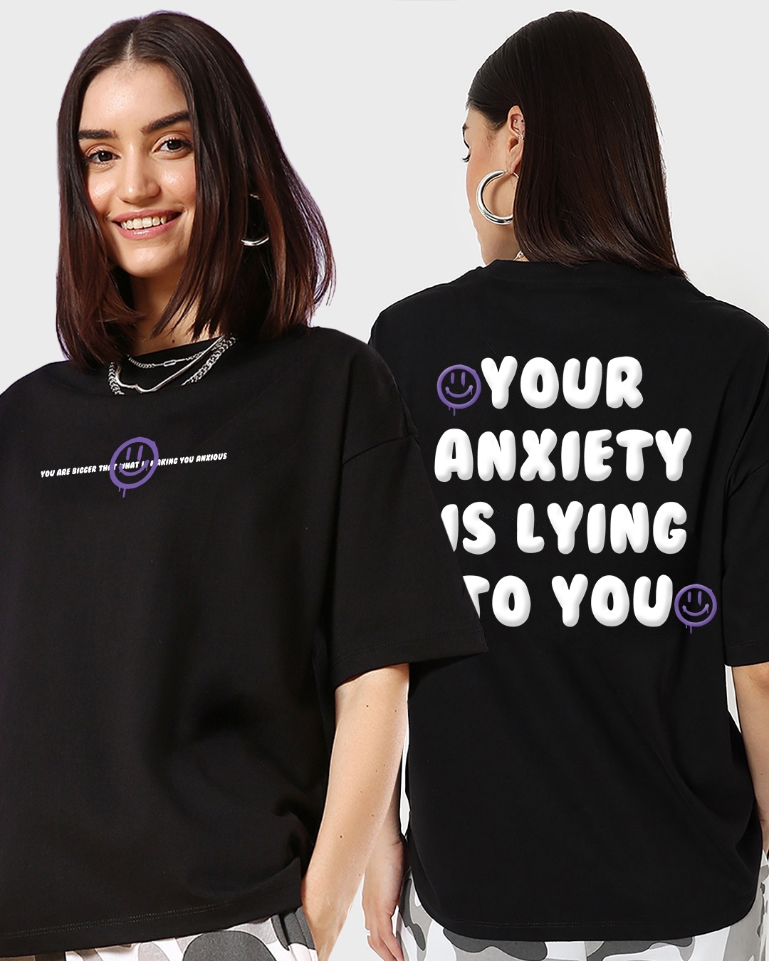 Women's Black Your Anxiety Is Lying To You Typography Oversized T-shirt