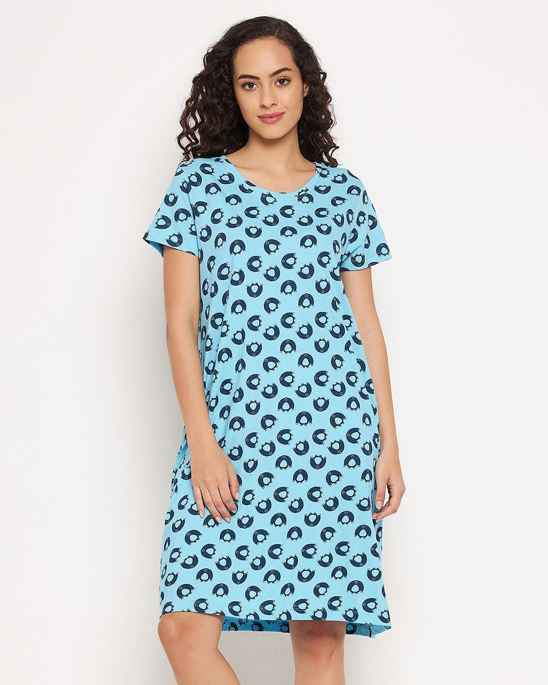 Women's Blue All Over Printed Night Dress